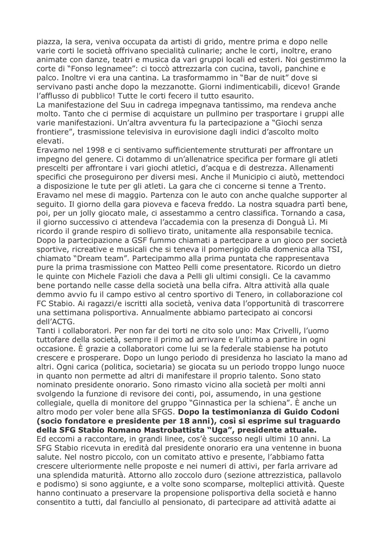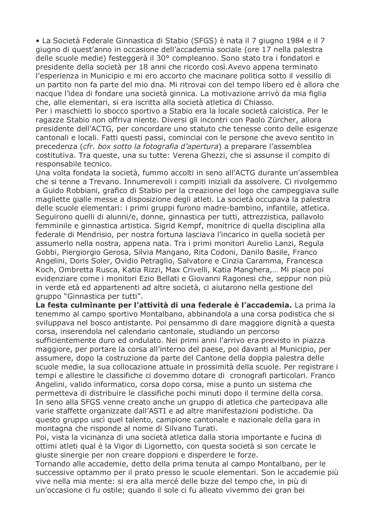 La SFG (Societร  Federale Ginnastica)